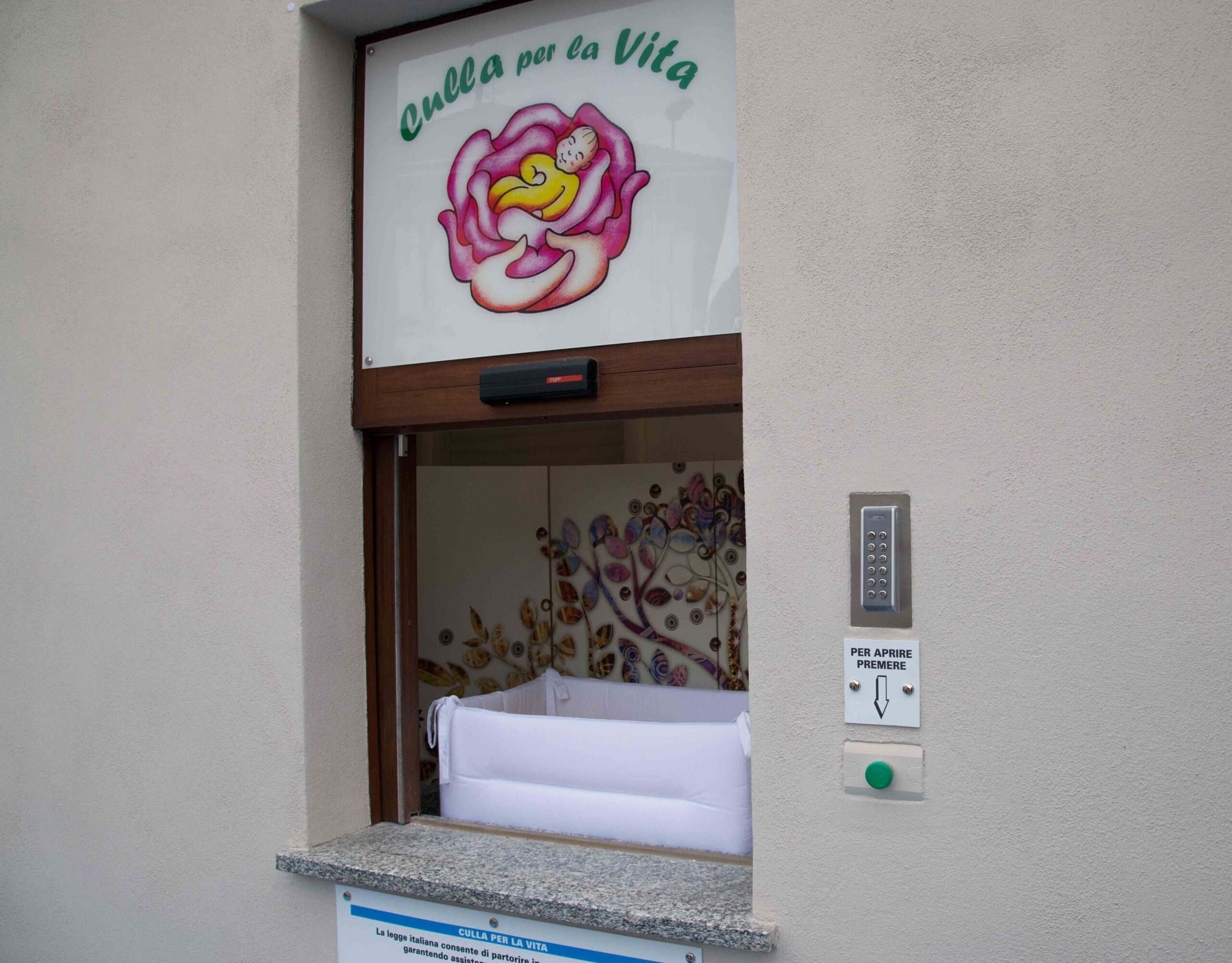 Cosa sono le Culle per la vita: Si tratta di dispositivi messi a disposizione dei cittadini appositamente per permettere alle mamme in difficoltà di lasciare, totalmente protetti, i neonati, nel pieno rispetto della sicurezza del bambino e della privacy di chi lo deposita. Di solito si trovano in luoghi facilmente raggiungibili, dove non sono presenti videocamere o dispositivi che permettono di identificare e individuare chi ha commesso il gesto. La Culla è dotata di una serie di dispositivi (riscaldamento, chiusura in sicurezza della botola, presidio di controllo h 24 e rete con il servizio di soccorso medico) che permettono un facile utilizzo e un pronto intervento per la salvaguardia del bambino.